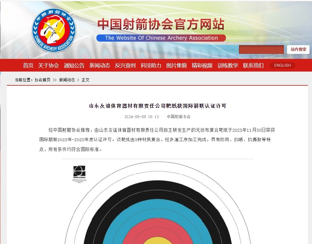 國(guó)際射箭聯(lián)合會(huì)-白金合作伙伴、國(guó)際射箭聯(lián)合會(huì)認(rèn)證器材、中國(guó)射箭協(xié)會(huì)審定器材